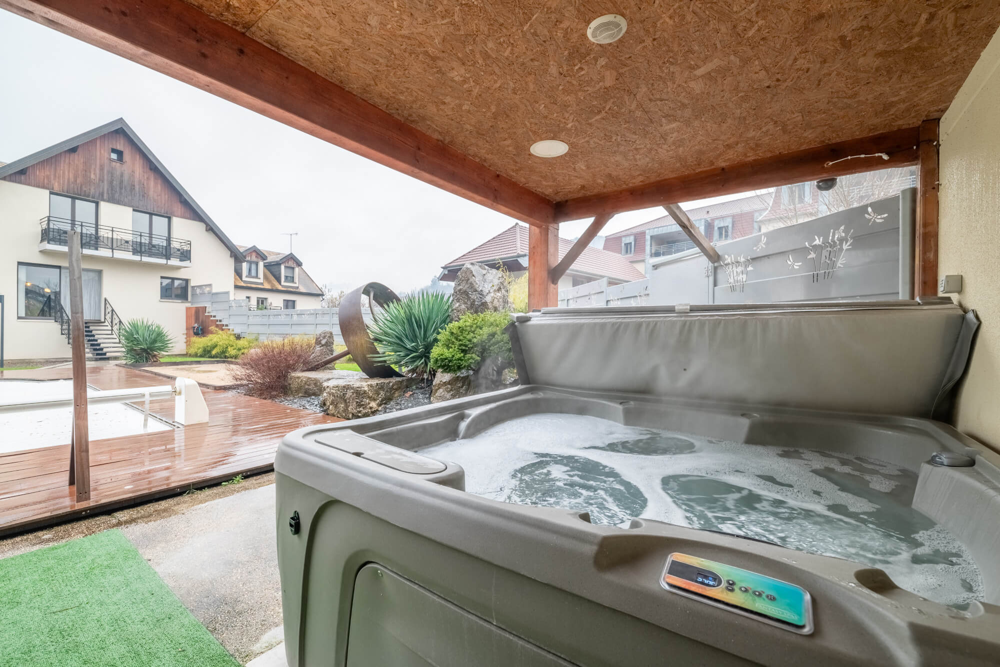 À l’extérieur, tout invite à la détente : grande piscine privée et chauffée, spa 5 places, terrasses et barbecue avec vue sur la rivière, jardin et terrain de pétanque (boules non fournies). L’accès direct à la Loue par un petit portail permet de profiter de la rivière en quelques pas.